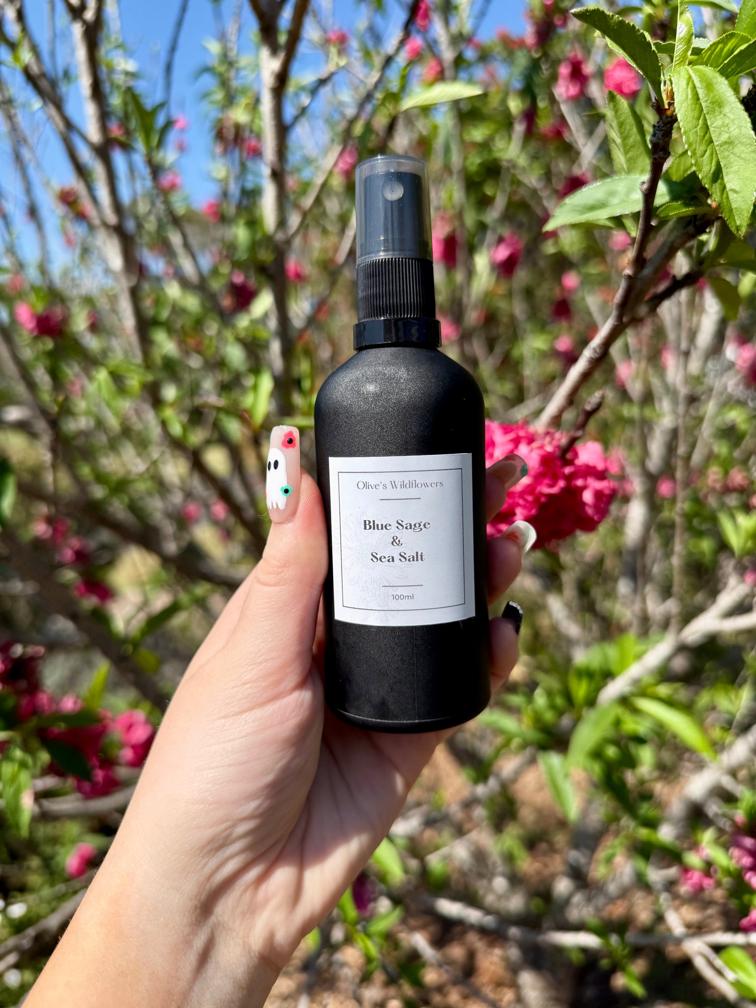 Available in calming Blue Sage & Sea Salt and sweet floral Japanese Cherry Blossom and the field of flowers, each 100ml matte black glass bottle is filled with beautifully blended scents inspired by nature. Perfect for creating a soothing atmosphere at home, in your workspace, or as a thoughtful gift. Naturally inspired, small batch, and made with love.